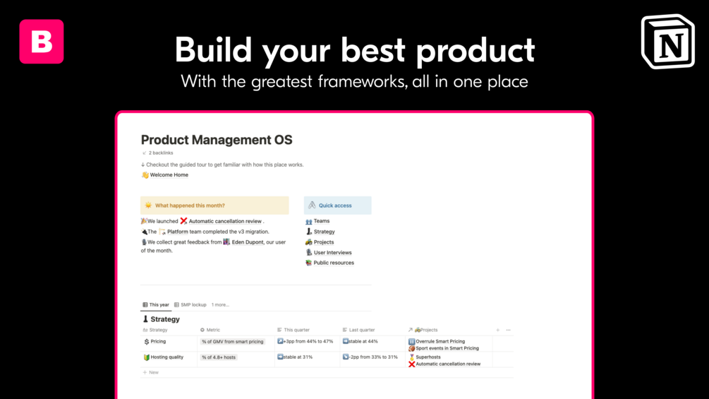 With the Notion Product Management OS, your team will be equipped with the sharpest tools of the most accomplished Product teams in the world.